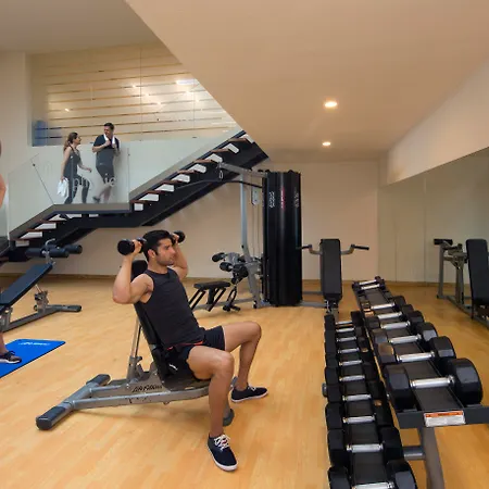 Tem centro de fitness com uma grande variedade de esportes.